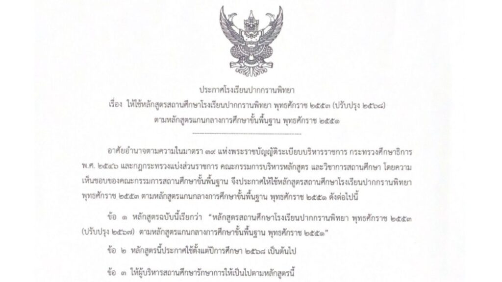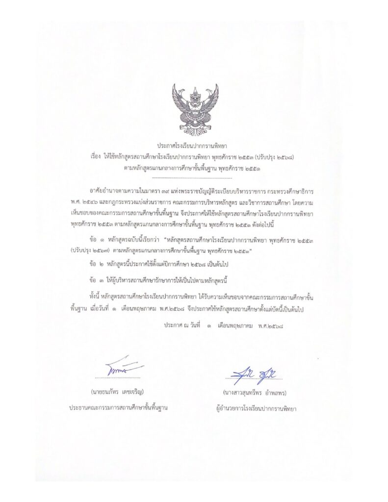 ประกาศโรงเรียนประกาศ ใช้หลักสูตรสถานศึกษาโรงเรียนปากกรานาพิทยาพุทธศักราช 2553 (ปรับปรุง 2568) ตามหลักสูตรแกนกลางการศึกษาขั้นพื้นฐาน พุทธศักราช 2551 Posted on พฤษภาคม 1, 2025พฤษภาคม 6, 2025 by โรงเรียนปากกรานพิทยา 01 พ.ค. โรงเรียนปากกรานพิทยา รางวัลครูผู้นำการเปลี่ยนแปลง : สร้างสรรค์การเรียนรู้เชิงรุก ด้วยนวัตกรรมและเทคโนโลยี ภายใต้โครงการ การพัฒนาการจัดการเรียนการสอน สู่การสร้างนวัตกรรม ฯ ประจำปีงบประมาณ 2568 เปิดเรียน ภาคเรียนที่ 1 ปีการศึกษา 2568