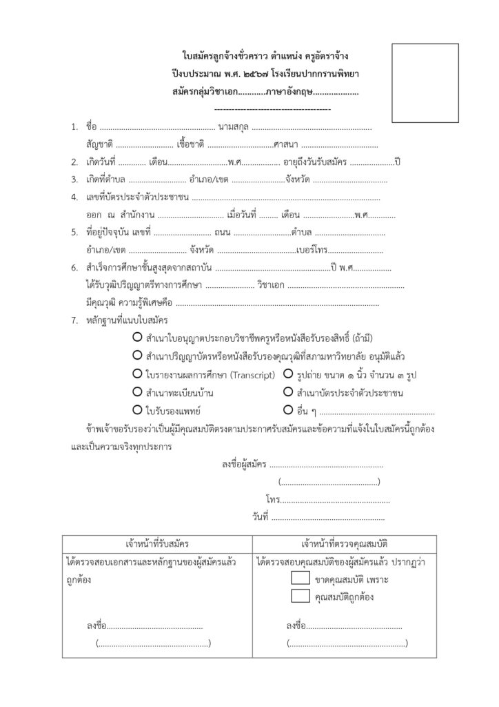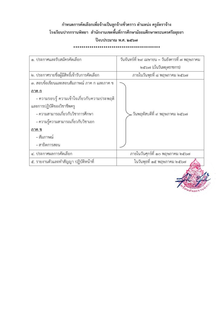 ประกาศรับสมัครรับสมัครลูกจ้างชั่วคราว ตำแหน่ง นักการภารโรง Posted on เมษายน 18, 2024สิงหาคม 27, 2024 by โรงเรียนปากกรานพิทยา 18 เม.ย. โรงเรียนปากกรานพิทยา ประกาศประกาศรายชื่อผู้มีสิทธิ์สอบนักการภารโรง